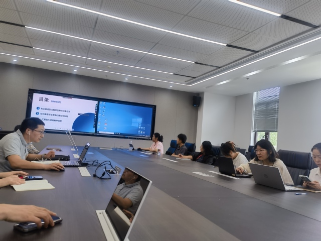 会上,三位老师主要介绍了知识图谱智慧课程建设与人工智能赋能教学创新,向大家展示了目前超星平台知识图谱建设的路径,当一门课程有了线上资源后,可以通过知识点导入、关系设置、资源关联等方式建设课程知识图谱,图谱建设后还能从不同维度进行设置,后续还可以关联其他课程做成跨课程、乃至整个专业的课程知识图谱群。在AI工作平台中,超星目前对学校免费开放,可实现教案撰写、导入、PPT自动生成、AI助手智能回答问题等一系列工作,可有效减轻老师们课前、课中和课后的压力。老师们听得十分认真,现场使用超星平台进行了模拟建课操作。