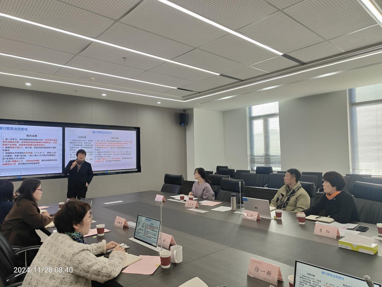 首先,会议听取了徐一新代表beat365体育亚洲官方网站党总支汇报2024年全面从严治党任务年终落实情况。她从履行管党治党责任、意识形态工作责任、基层党建工作责任、师德师风、党风廉政、校园安全等风险管控情况等方面进行了详细的汇报。