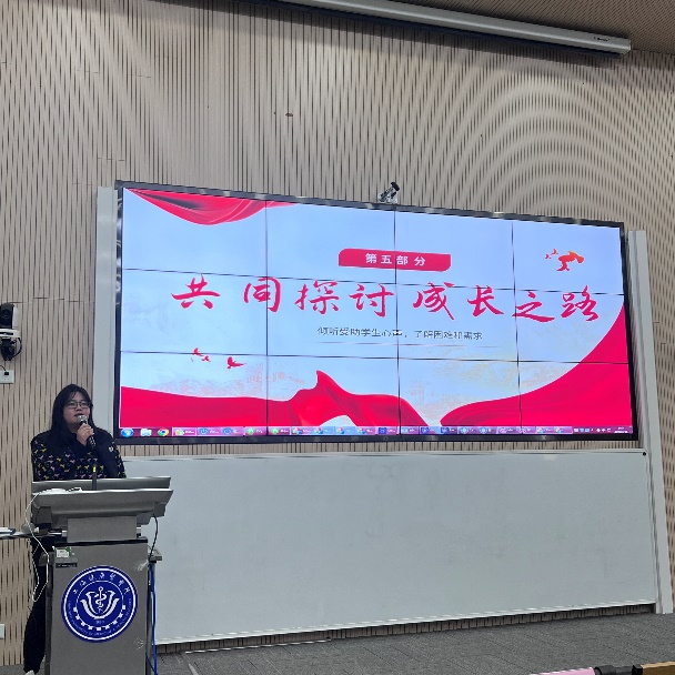 活动现场,资助专员葛飞飞向受助学生讲述了国家和学校资助育人工作的初心和目标,列举了学院优秀资助育人典型事迹和高校资助育人工作中的警示案例,提醒同学们要引以为戒,提高防范意识。党总支副书记叶婧以自身经历启示学生要树立自立自强的精神,珍惜学院、学校提供的平台和资源去实现梦想。叶书记与同学们深入交流,了解受助学生的生活状况和需求,并对他们寄予厚望,希望他们能够以积极的态度面对困难与挫折,怀揣感恩之心努力学习,回报社会。