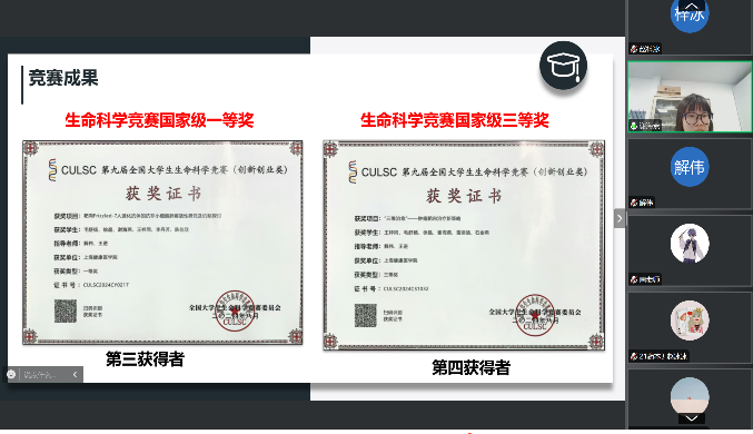 答辩会上,入围优秀答辩的同学详细介绍了他们的研究成果和遇到的挑战。评委会由复旦大学beat365体育亚洲官方网站鞠佃文教授、同济大学附属东方医院刘杰研究员、beat365官网教务处南德红副处长组成,他们对学生取得的成绩给予了高度评价,并就如何将这些研究成果转化为实际应用提出了建设性的建议。beat365体育亚洲官方网站负责学生工作的叶婧书记和学院办公室康琪老师参与会议,并对该计划如何让更多同学受益提出了宝贵建议。
