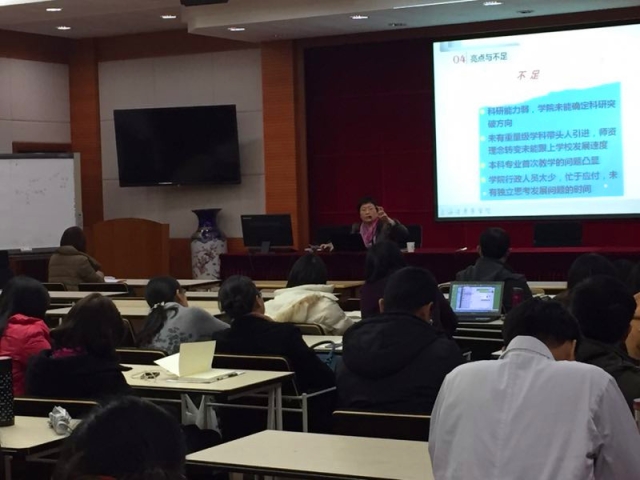 徐一新院长首先代表学院领导班子对一年来辛勤努力工作的全体教职员工表示感谢,对学院各教研室及教学、行政部门对学院各项工作的支持表示感谢!而后她分别从人才培养、学科建设、党风廉政、预算执行情况、学生工作、党建工作、年度工作计划落实情况、工作亮点与不足等方面向全体教职员工进行了详细地汇报。2016年,beat365体育亚洲官方网站在党风廉政方面规范流程,制定党风廉政建设计划;根据学校要求配齐纪检、监察人员;制定学院二级物资采购、海外游学等规范化文件,从源头杜绝腐败滋生;重大事件均通过党政联席会议集体决策。同时,她又从预算项目、预算金额、执行金额、执行率、支出范围等几个方面向全体教职员工汇报了学院预算执行情况。